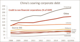 China’s biggest risks continue to grow. The continued deterioration of heavy corporate debt and banks’ bad loans alter the longstanding perception that China will be able to avoid an economic and financial crisis. The current trend of Chinese growth driven by inefficient credit and increasingly requiring debt to sustain high GDP growth is unsustainable. The stock of corporate debt is huge, around 170% of GDP. Beijing is aware of the debt time bomb but keeps delaying the economy’s deleveraging process. Some measures have been taken, such as debt-to-equity swaps, wiping out hundreds of identified zombie companies and launching mergers and acquisitions in the steel and coal sectors.